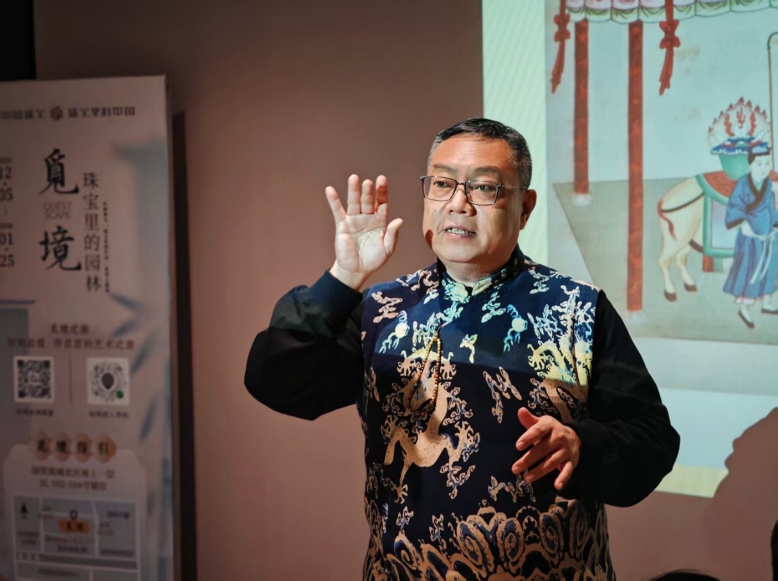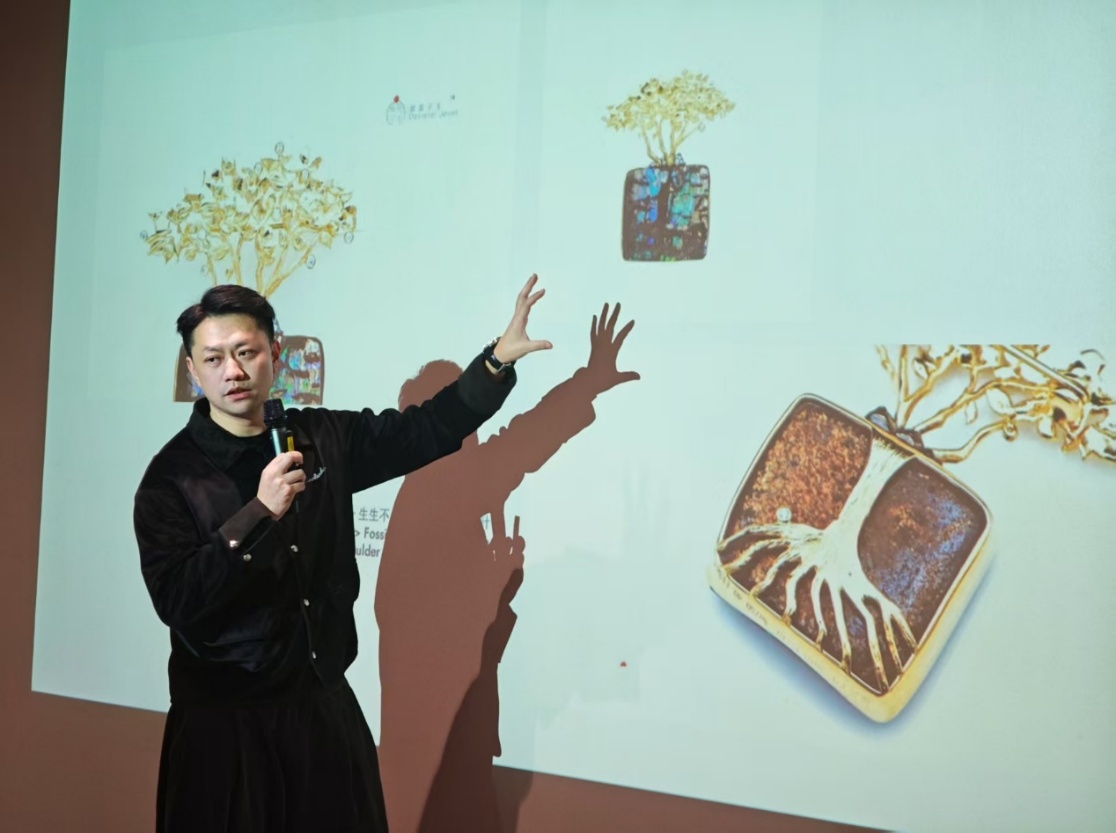 特邀設計師嚴翔帶來“大師面對面”環節,詳細分享玉石珠寶的設計工藝與創作理念,講解珠寶背後的文化內涵與審美價值。