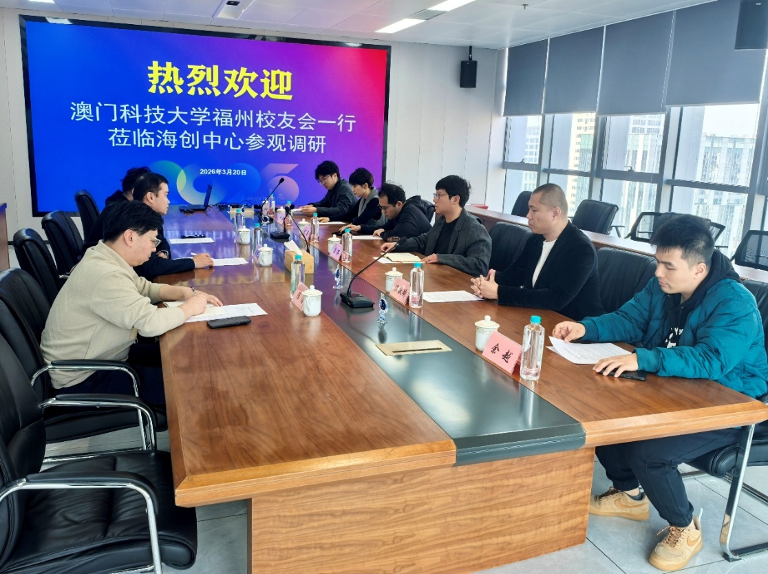2026年3月20日,澳门科技大学福州校友会理监事一行到访福建省海创中心,与福建省海创会组委会——福建省六一八产业发展有限公司围绕 2026 年协同工作开展座谈交流,福建省六一八产业发展有限公司副总经理吴荣忠一行热情接待,双方就深化闽澳科创融合、推动成果落地等事宜深入交流、达成广泛共识。