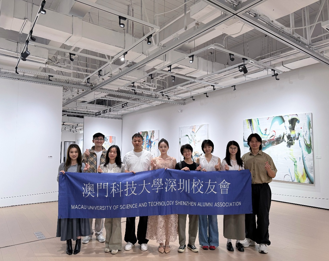在OOHART策展人王塞君的全程引领与专业讲解下,校友们参观了《空境 Void·Vision》与《# 12》国际当代艺术展。《空境 Void·Vision》以对传统“留白”美学的当代表达为核心,通过动态生成的视觉语言,呈现色彩流动与空间生长的过程,在当代语境中响应东方审美精神。作为青年艺术家计划的重要实践,《空境》亦展现出新生代创作者在全球化语境下的探索方向。《# 12》汇集45位国际当代艺术领域活跃艺术家,呈现逾百件绘画与装置作品。值得关注的是,本次展览特别邀请澳门艺术家参展,将澳门在当代艺术领域的创作力量引入大湾区核心城市,使校友们得以在深圳近距离感受澳门艺术与国际语境之间的对话与融合,进一步强化澳门文化在区域艺术生态中的连接与影响。