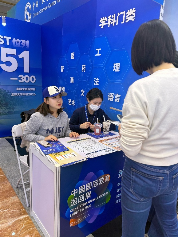 宣讲会次日大学参加了由中国(教育部)留学服务中心主办的“中国国际教育巡回展(上海站)”,上海校友会理事长王莹、副秘书长韩斅博继续到场协助工作,与考生和家长交流答疑。