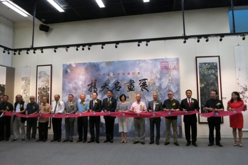 澳科大唐嘉樂副校長(右四)及各界代表參加楊大名(左一)畫展開幕剪綵儀式