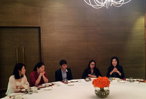 澳科大法學院執行副院長方泉教授(右一)、馮衛敏校友(左二)、歐陽卓然校友(中)、梁燕媚校友(右二)以及校友總會湯曦副理事長(左一)在分享會展開交流