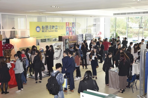 澳門科技大學於3月16日及17日於A座和N座舉辦 “澳科大校園招聘會2017”。今年參與招聘會的企業反應非常踴躍,共吸引包括校友企業澳門MTel電信有限公司、珠海誠豐文化傳播有限公司等,超過130多家企業和機構參加,當中包括18家內地企業出席,提供約3,500個職位空缺。現場亦設36場就業講座,對應屆畢業生瞭解企業文化、職位要求和面試技巧等均有莫大裨益。