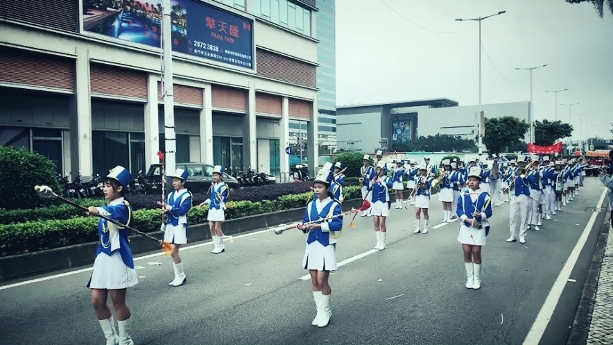 沿途的风景让校友们忘却寒冷、快步前行。本次百万行活动路线以孙逸仙大马路近观音像为起点步行至终点妈阁庙前地,全程约三公里,多个乐队沿途演奏。主礼台上,武术总会与科大艺术团为百万行担纲演出,濠江中学步操旗乐队随大队行进并献演花式步操乐曲。