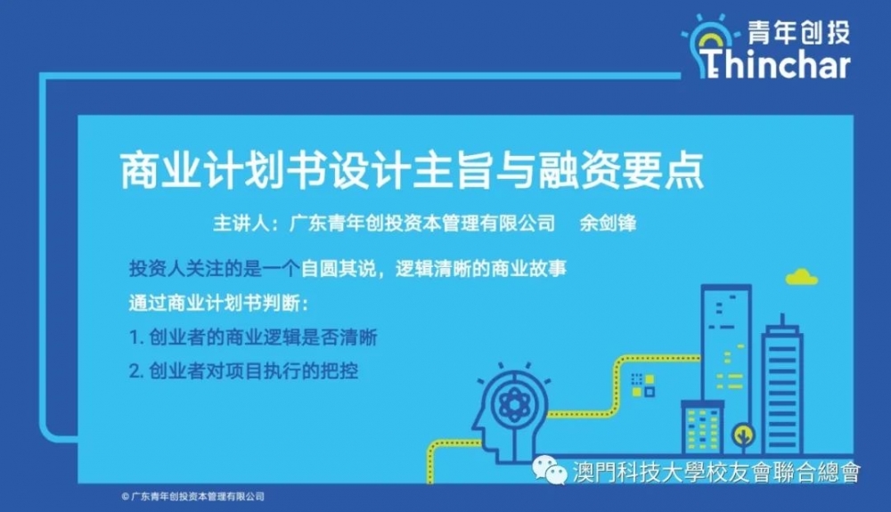 余劍鋒主要就商業底層邏輯、項目執行把控的關鍵點解釋清楚。同時,他指出一份合格的商業計劃書必須列明項目亮點、項目概況、團隊介紹、市場概況、行業分析、商業模式、競爭格局、運營現狀、未來規劃以及融資計劃。