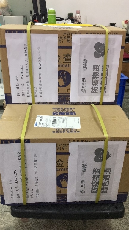 2月8日元宵節,第二批防疫物資3000副醫用手套又通過綠色通道,送到湖北襄陽第一人民醫院醫護人員的手中。2月10日,第三批防疫物資2000副醫用手套發往湖北,2月中旬,預計第四批防疫物資約20000個醫用口罩將從印尼運抵國內,其他的防疫物資亦陸續在採購和運輸的路上,澳科大校友們將繼續發揚 “散如滿天星,聚似一團火”的精神,拳拳之心,為這場防疫抗疫戰貢獻自己的力量。