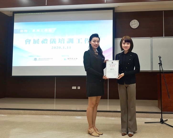 2020年1月11日下午,澳科大校友总会邀请到澳门国际礼仪文化协会会长校友担任导师,于澳科大N座212室举办会展礼仪工作坊。活动通过导师亲身引领教授礼仪培训知识,让校友及同学们了解到如何更专业的开展公关会展接待工作,展现自我风采。