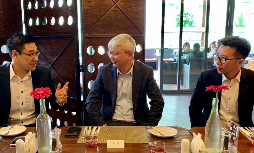 (左至右) 澳门大学校友会周可祺副主席、澳科大校友总会会员大会主席庞川副校长、澳门理工学院校友会黄宇棋理事长在席上进行交流