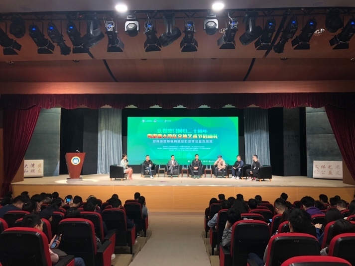 省青聯常委、廣州恆大淘寶俱樂部運動員馮瀟霆,省青聯常委、廣粵錦泰控股集團有限公司董事長張陽、澳門著名賽車手馬兆祥、澳門科技大學隊代表李家謙、知名歌手武藝五位嘉賓,依據豐富的專業經驗,分別就自身職業歷程、青年文體藝術交流、青年融入大灣區發展等方向對在座青年進行分享,旨在展示改革開放以來文體事業發展成就,引導港澳青年增進對祖國的文化認同,為打造粵港澳大灣區青年文化體育常態化交流和發展的機制貢獻力量。