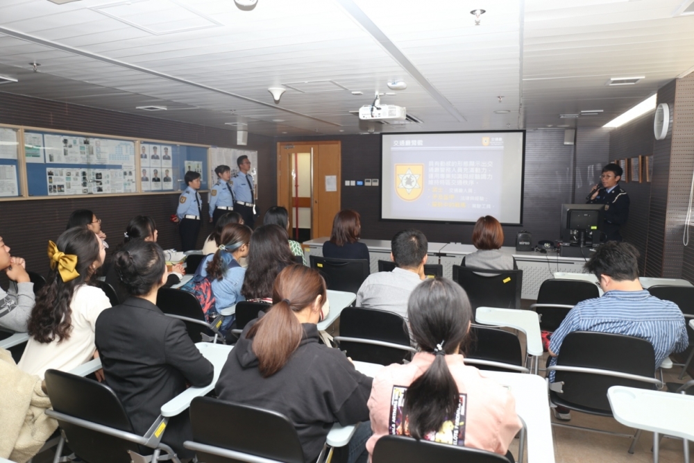 为加深澳科大师生校友对澳门特区政府部门的了解,澳门科技大学校友会联合总会及人文艺术学院校友会一行于2019年11月19日下午前往澳门治安警察局交通厅拜访,听取警员介绍该厅的工作内容、办公流程以及与市民大众的互动方式,并参观了该厅的工作环境、执勤装备等。
