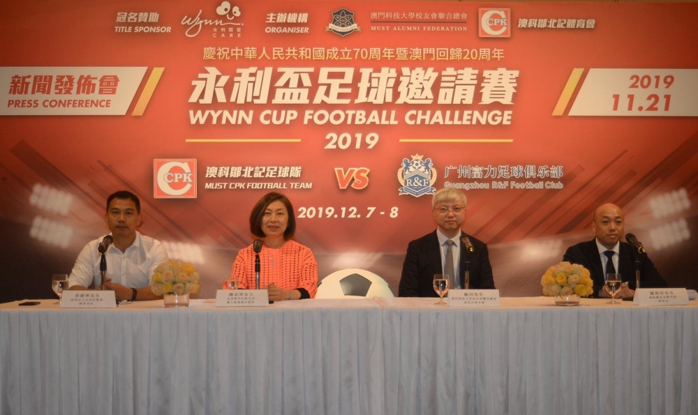 主辦單位於11月21日下午在永利澳門宴會廳召開新聞發佈會,介紹活動詳情。澳門科技大學校友會聯合總會會員大會主席龐川、永利澳門有限公司副主席兼執行董事陳志玲、澳科鄒北記體育會理事長鄒俊佳、廣州富力足球俱樂部副董事長黃盛華等嘉賓出席。