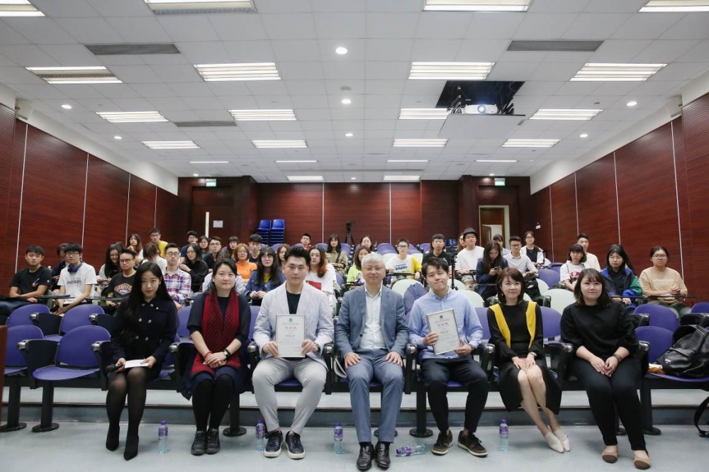 講座開始前,澳科大副校長龐川教授代表人文藝術學院與校友總會向演講嘉賓贈送紀念品與感謝狀,並合影留念。