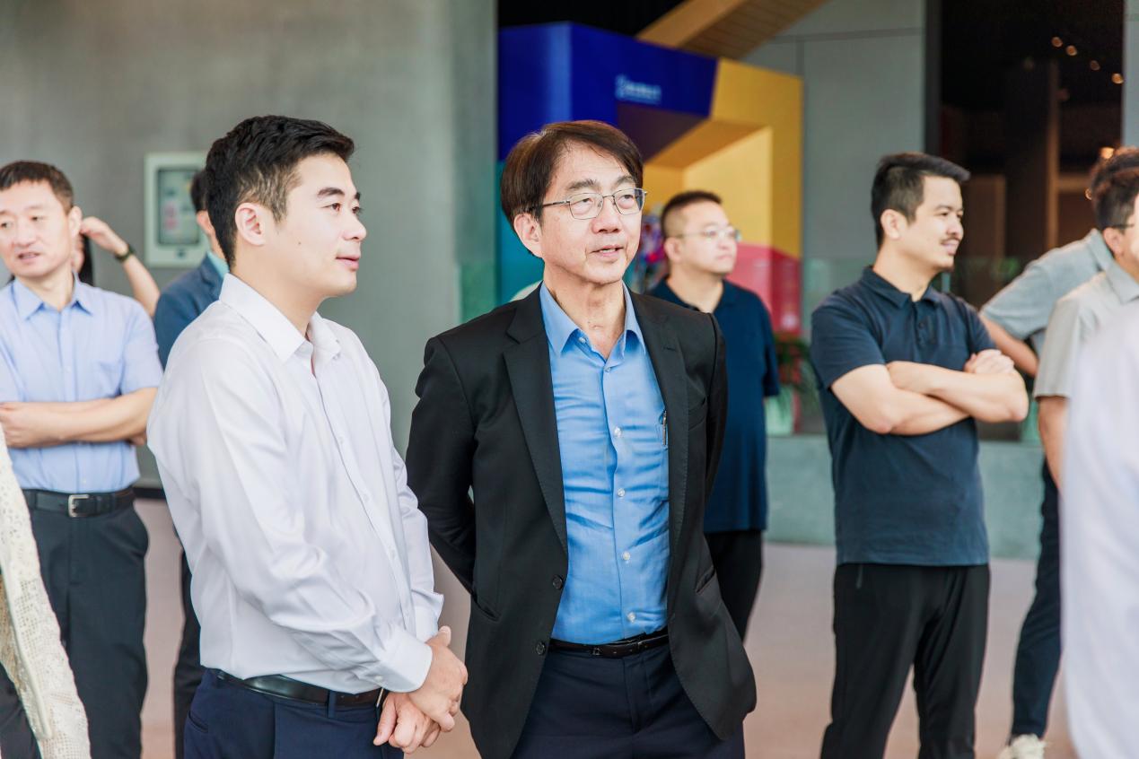 ▲2025年7月14日,林通(左一)陪同澳科大副校监、校长李行伟(左二)参观网龙网络公司